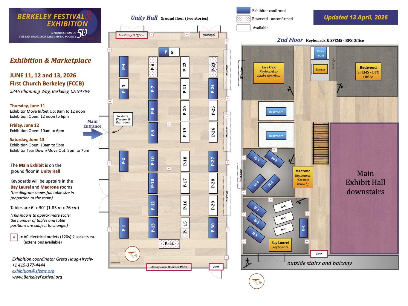 The Exhibition welcomes all interested instrument builders, publishers, and service and early music organizations to register for table space at the Exhibition, which will be held in the newly rebuilt South Wing of First Church Berkeley UCC.