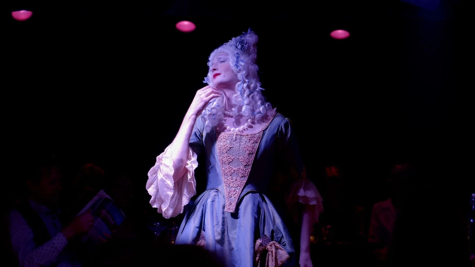 The Countess is a character that has been with me even before I consciously knew or named her. She is an amalgamation of drag, classical music culture, and baroque performance practice. She has the enormous hair and impossible waist (If I do say so myself) of a high baroque aristocrat, the sensibilities of a grand twentieth-century diva, and the messiness of an after-hours open-mic. And, with camp and decadence, she winkingly plays on both registers of the parallel between opera and drag."